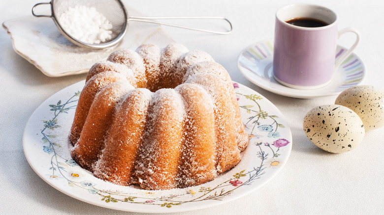 Here's the deal: You don't need to go all out with Bundt cakes. We're serious. A majority of the time, these kinds of desserts are already jam-packed with some intense flavors. Bundt cakes are also known to be dense and moist, which Martha Stewart claims is exactly why you should actively avoid coating baked goods with frosting or heavy garnishes. Additionally, Bundt cakes already look gorgeous after being carefully removed from the pan. They are literally baked into an attractive design, so why would you want to cover it up? Instead, Stewart suggests brushing the surface of the cake with some kind of syrup. This will help to keep the outside of the cake moist, make it shine with sugar, and not cover the cake's beautiful shape.