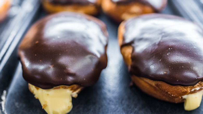 Who doesn't love a soft-filled donut? The key to getting the perfect filling on a donut is to use a pastry bag rather than your hands. Craftsy recommends using ¼ to ⅓ cups of filling for each donut, depending on the size. For the optimal filling experience, work with donuts that have cooled enough; donuts that are too hot will merely melt the filling and result in a piping mess.