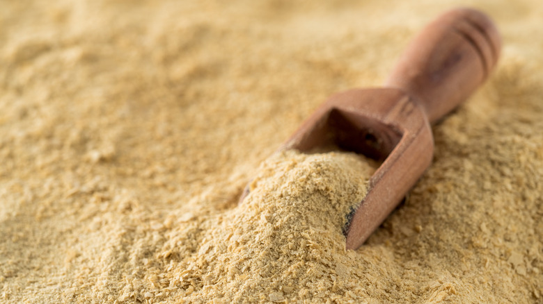 Nutritional yeast is an inactive yeast from the same family as baker's yeast and brewer's yeast (via Healthline). According to Healthline, this savory fungus, which comes in a powdered or flaky form, is a highly nutritious product that can fit a wide range of eating styles because it is low-calorie, gluten-free, and vegan-friendly. It's also a source of protein and B vitamins.