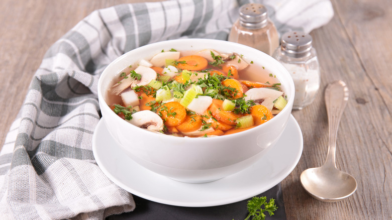 You could also try incorporating some umami profiles into your soup from the likes of tomatoes, mushrooms, potatoes, or carrots, per MSG Dish. As discussed by Ajinomoto, umami is full of complexity and tends to hang around on the palate for a while, especially when compared to sour, sweet, salty, and bitter tastes.