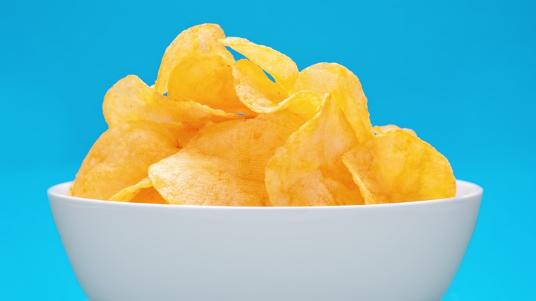 Who doesn't love a big ole platter of chicken tenders? Let's face it, they're a kid's dream and an adult's guilty pleasure. The crunch from the breading is oh so satisfying, with crispy fries on the side for the perfect accompaniment, and you can't resist your go-to dipping sauce for serving. From honey mustard and barbecue sauce to ketchup and ranch dressing, these delicious sauces add an extra dimension to your crispy strips. However, believe it or not, the crunch we desire from a chicken tender can be elevated even further thanks to one very common snack ingredient: potato chips.