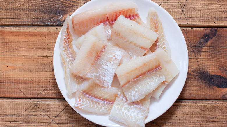 When it comes to preparing pollock, some cooking methods are better suited for the lean fish with its firm texture. Wild Alaskan Company recommends baking pollock or incorporating it into casseroles by itself or with other seafood. The Spruce Eats suggests even making it into fish sticks or fish cakes. And don't rule out frozen pollock — after defrosting the fish, Livestrong states it can be pan-fried, steamed, and grilled.