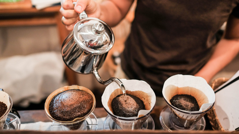 You may recognize Melitta pour over coffee makers based on the original and later cone-shaped designs, which work on similar principles to today's conical V60 and Chemex drippers, as explained by Perfect Grind Daily. Though multiple versions exist now, one thing remains constant in the opinion of java expert: the bean grind is what most dictates a successful cup of pour over. Fortunately, it's as simple as choosing the right type of grinder.