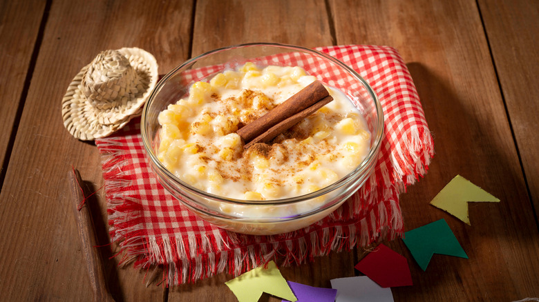 Canjica de milho is a dish most often found in Brazil's southern region, and it is usually served during the Festa Junina (via Amigo Foods). The holiday was first introduced to the country by the Portuguese colonists, and it both commemorates the Catholic saint, John the Baptist, and celebrates the end of the rainy harvest season, according to Vista Create.