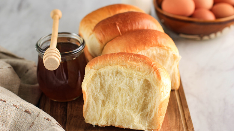 Busby's Bakery explains that the added protein from the egg supports the gluten in the bread, creating air pockets that assist with the dough's rising. The ingredient's emulsifying properties (featured in the egg yolks) strengthen the gluten bonds to form a more cohesive and elastic dough. These processes are critical to creating a light and fluffy loaf with a rich, rounded flavor. The fat from the yolks also helps soften the end product and caramelize the crust, giving the loaf a tender, shiny, golden-brown finish.