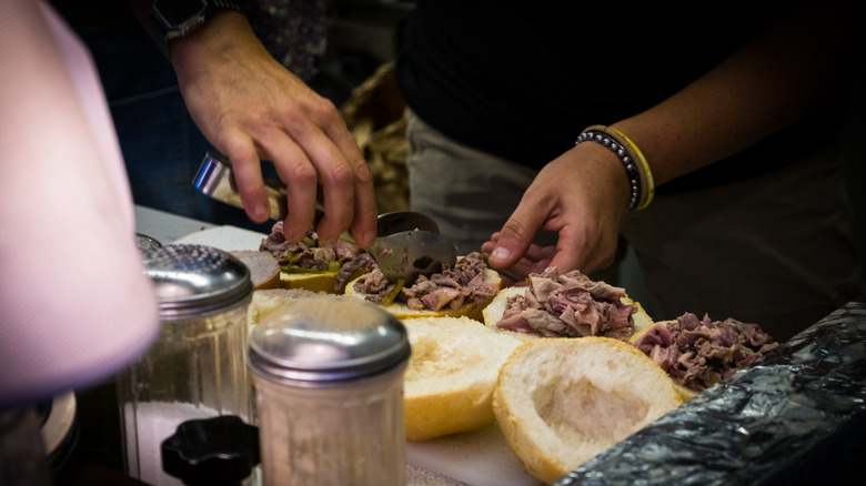If you can't make it to Italy anytime soon, you aren't likely to experience this sandwich. The preparation process is time-consuming, and really not worth the effort unless you're selling them. This is because the meat needs to slow cook, and your local butcher shop will need to carry this specific cut of organ meat, according to Visit Florence. If you are able to get your hands on lampredotto, the entire piece will need to be stewed alongside the onions, carrots, celery, and any other veggies you choose.
