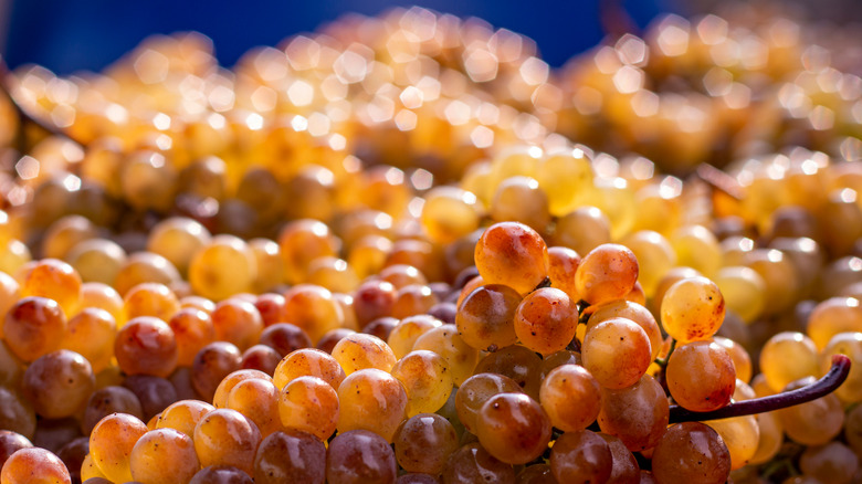 For the past several years, orange, or skin-contact, wine has been having a moment. And no, these wines aren't made from oranges — according to Wine Folly, orange wine is made by treating white wine grapes like red wine grapes. While winemakers will generally press their white grapes immediately, separating the juice from the skins, in red winemaking, the grapes are left in contact with the skins, which allows for the extraction of color, flavor, and tannin. With skin-contact wines, the white grapes are left on their skins for a period of time, allowing those colors, flavors, and tannins to play a role in the final product.