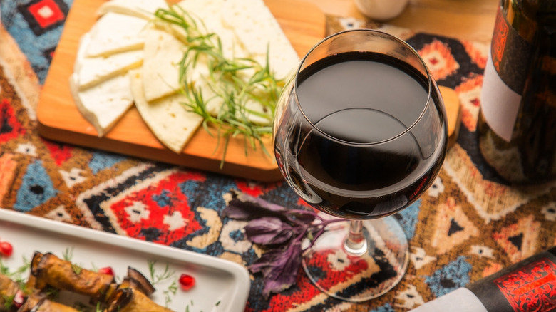 When it comes to red wine, the Georgian variety you'll likely encounter the most is saperavi. Per Wine-Searcher, this dark-skinned grape can produce wines with a marked-color intensity along with high acidity. It has often been used to make cheaper wines, but as of late, many producers are taking this grape seriously by producing high-quality premium wines, often aged in oak, that can last for years in the bottle. Since it ripens late, it can be cultivated in cooler climates without risking frost damage — it's now finding a new home in New York's Finger Lakes region.