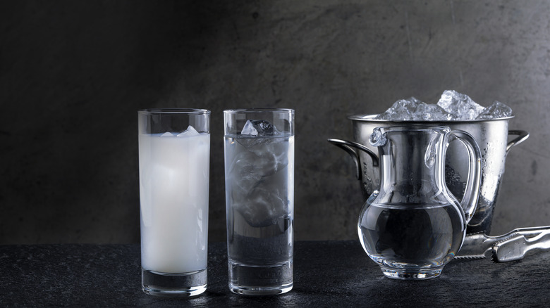 But the famous Greek spirit isn't, in fact, meant to be sipped straight, according to the Post. Rather, a small amount of ouzo should be served in a tall, narrow glass alongside a pitcher of water and plenty of ice, the paper notes. The drinker should pour water into the glass almost to the top — turning the quaff a milky, opaque white — and then drop in a couple of cubes of ice. Similar to the way those other anise spirits are consumed around the world, adding the water is a key step to appreciating all the flavors in a good ouzo, since the flavor compounds in anise seeds are not fully alcohol-soluble but do dissolve in water (via McGill University). Once bloomed with H2O, the flavors in the spirit can taste both brighter and more well-balanced — making ouzo enjoyable to sip not only on its own, but alongside food, as well. Fried calamari with a spritz of lemon, anyone?