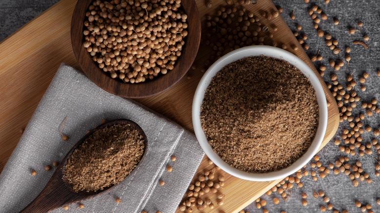 Here's the deal with coriander: It's a lot like cilantro in that for some people, fresh coriander tastes like soap because it has a bright citrusy zip to it. However, when ground and toasted, coriander seeds take on a whole new flavor profile. MasterClass claims that after toasting, coriander develops earthy sweet tones which are absolutely the perfect characteristics to bring depth to nearly any dessert.