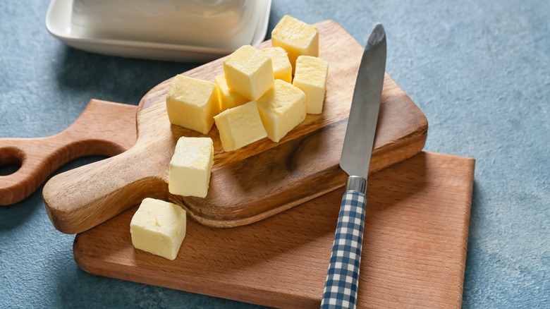 Beloved especially within French cuisine, where it's known as "beurre noisette," brown butter can be spooned over cooked fish, meat, and vegetables, and is often mixed with one part lemon juice to four parts butter to make a simple and flavorful sauce (via Delighted Cooking). And though it sounds fancy, brown butter is actually extremely simple to make, typically involving heating room temperature, unsalted butter in a heavy-bottomed pot over medium-to-low heat until the milk solids appear golden brown and the mixture smells fragrant — but being careful to pull the butter before the milk solids burn. But if you're in the mood to incorporate this delicacy into some baked goods, ASAP, you might be wondering if you can make brown butter in the microwave.