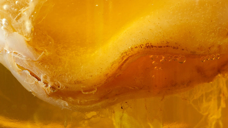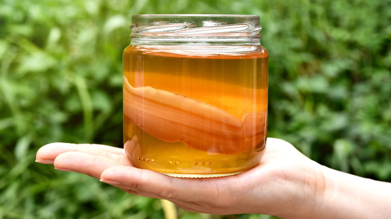 What exactly is kombucha? Simply put, kombucha is a special type of sweetened tea, per The Food Institute. The thing that sets kombucha apart from other brewed-tea beverages is that it is fermented via the cultivation of a floating mass called a SCOBY, which stands for "Symbiotic Culture of Bacteria and Yeast," according to Scientific American. The glob-like SCOBY can look kind of scary, but its role in the production of kombucha is quite magical.