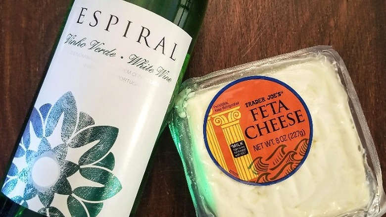 Traditionally a key ingredient in the Mediterranean diet, feta is one of the lowest-calorie cheeses available. Trader Joe's feta has 70 calories per ounce, with five grams of protein (via fatsecret). The feta has a tangy flavor and crumbly texture. It is perfect for crumbling into salads, topping grilled vegetables, or mixing into a whipped feta dip —dishes all delicious paired with the Espiral wine.