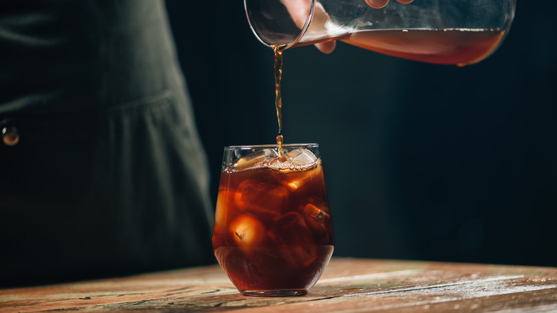 According to Insider, this process makes cold brew easier on the stomach and more mellow and smooth on the tongue, unlike its hot counterpart. Once the concentrate is made, the level of caffeine and punch of flavor is in your hands — literally. It's typically made with a higher coffee-to-water ratio, but you can make it however you want. Just dilute the concentrate with water, and you can have more, less, or equal amounts of caffeine as a traditional hot cup of joe (via MasterClass).