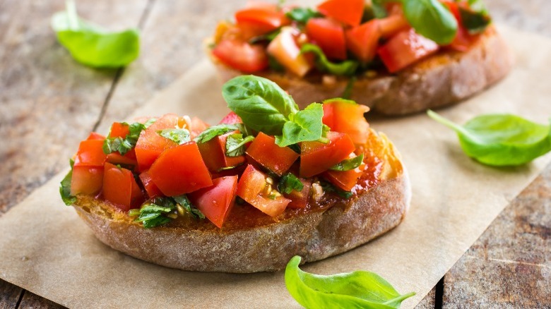 While nothing beats the quality of fresh tomatoes that are in season, some suggest that canned tomatoes are better than out-of-season tomatoes in foods like bruschetta. The easiest way to elevate canned tomatoes for this savory starter is by roasting seeded whole tomatoes (from the can), then chopping them up and combining them with fresh basil and minced garlic. Slab some over some toasty bread and enjoy.