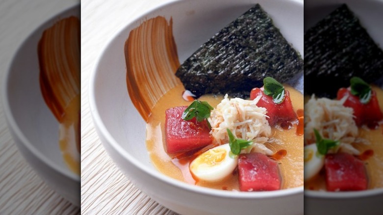 The cuisine at Tunateca Balfegó Espai Gastronòmic fuses Japanese and Western techniques and ingredients to create two uniquely curated menus within one restaurant. There are two separate tasting menu options at Tunateca, both featuring optional beverage pairings as well. Sure enough, the rotating offerings have a range. Current tasting menus show a crispy bluefin tuna pâté sandwich, decked with dried plum and mustard, and a tuna with poblano mole served along with foie ganache and crispy corn omelet. Every dish at Tunateca is innovative and memorable.