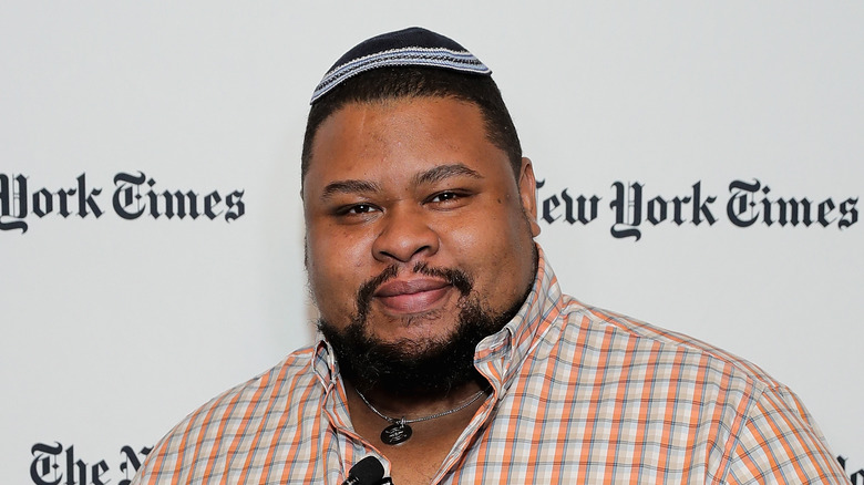 Hanukkah is, in part, a celebration of oil, so fried foods are a big part of the holiday. Twitty makes a special Hanukkah fried chicken breaded in matzo meal. This year, he's also trying a new twist on latkes. He starts with grated potatoes, then adds in some Louisiana flavors. "For Louisiana latkes, I throw in a little chopped celery, a little bit of grated yellow onion, chopped scallions, and red pepper," he tells Tasting Table. "So, I put the trinity in it, a little creole spice, a Cajun spice in it." He'll use these latkes as the "buns" of a collard green sandwich inspired by a traditional dish from the Lumbee, who live in Robeson County, North Carolina.