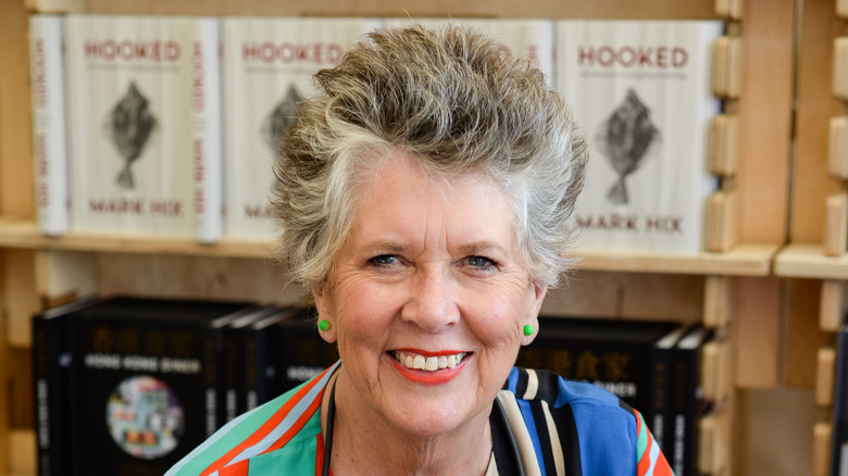 If you're swearing off fruitcake or perhaps want to make something a little bit easier (yet still impressive), Prue Leith offers several Christmastime baking tips to Tasting Table. "To make a proper Christmas cake, it takes ages — lots of fruit, you need marzipan and decoration and icing, and it's a whole performance," she insists. A Yule log, on the other hand, is relatively simple. You just need to make (or even buy) a chocolate sponge cake in a thin sheet, spread whipped cream on it, and roll it into a log. She frosts hers with chocolate buttercream frosting that she roughs up with a fork to simulate tree bark. Then, for the final touches, "Stick a piece of holly in the top, or any Christmas decoration — it could be fake if you like — and shake some icing sugar all over it, and it'll look like a Christmas log.