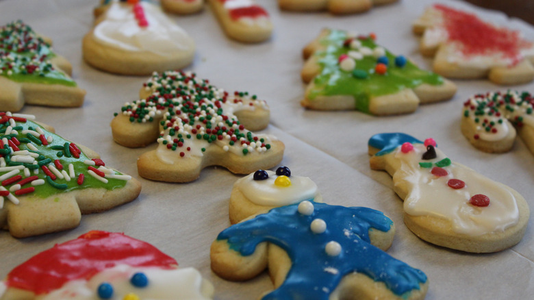 Tossi also makes classic cut-out cookies frosted with decorative icing, as they're a nostalgic treat for her. "One of my grandmas would just always make cut-out cookies, frost them, decorate them," she reminisces. Nothing says Christmas more than a tin packed with colorfully decorated sugar cookies, and making them can be a family activity. Per Tossi, "It's just a fun way to spend time together, to get cheesy, put on the holiday tunes, and just spend time creating something together."