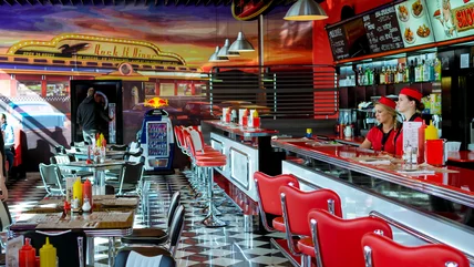 If anything screams "Americana," it's the image of a 1950s-style diner clad in fire-engine-red vinyl, chrome, neon, and checkered floors. Double that if a waitress named Flo barks out orders to a grumpy short-order cook, using food-inspired phrases that are mysterious at best and borderline offensive at worst. Though originally lacking in glamor and sophistication, retro diners now pull at the heartstrings of anyone pining for so-called simpler days. Drop a dime in a jukebox, order a milkshake with two straws, and stare dreamily into the eyes of your heartthrob crush, right?