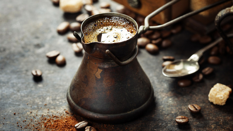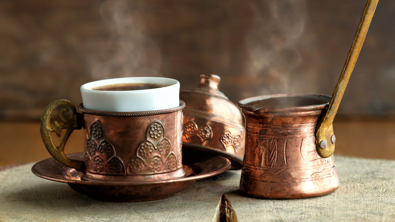 Coffee aficionados, take note. In the ever-expanding world of specialty coffee, one brewing method is finally beginning to get the attention it deserves. Cezve or ibrik coffee, commonly referred to as Turkish coffee, is one of the oldest coffee brewing methods in the world, per Java Presse. Coffee has evolved in waves, of which there have been three. The first wave established coffee as a commodity. The second wave began with the development of Starbucks, and we all know how that turned out. The current third wave is very much focused on places of origin, sustainability efforts, and creating specialty coffees (via Essence Coffee).