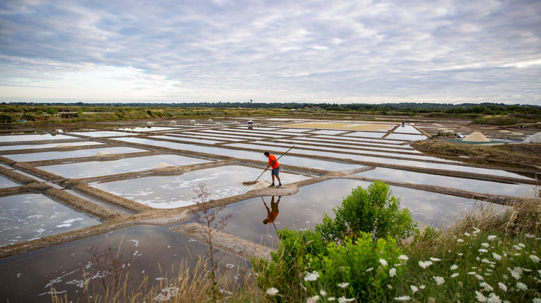 Sel gris is an unrefined salt, notes Recipe Tips, so all of the minerals that are deposited alongside the natural sea salt don't just color the crystals, but also flavor them. The flavor will be a bit more oceanic, with higher amounts of iron, calcium, zinc, magnesium, and more. All the harvesting process requires is evaporation and some raking. From there, it's up to distributors to decide if they'll sell the product in coarse crystals or fine flakes. This process is similar to the fleur de sel harvesting process, but a lot simpler.
