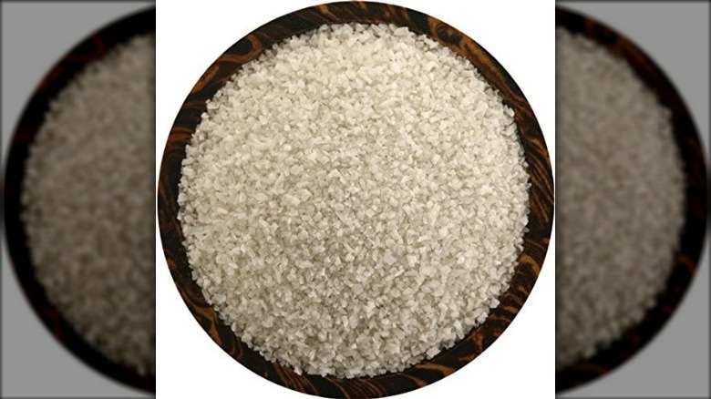 Sel gris is a French term, which literally translates to gray salt, and is also commonly called Celtic sea salt, per Food Republic. As the name would suggest, sel gris has a slight gray hue to the salt crystals. This is due to the harvesting process, in which clay basins are set underwater in the Atlantic Ocean. Once the water evaporates, it leaves behind natural salt deposits, which are much richer in minerals than traditional sea salt, creating sel gris' signature gray tint (via Recipe Tips).