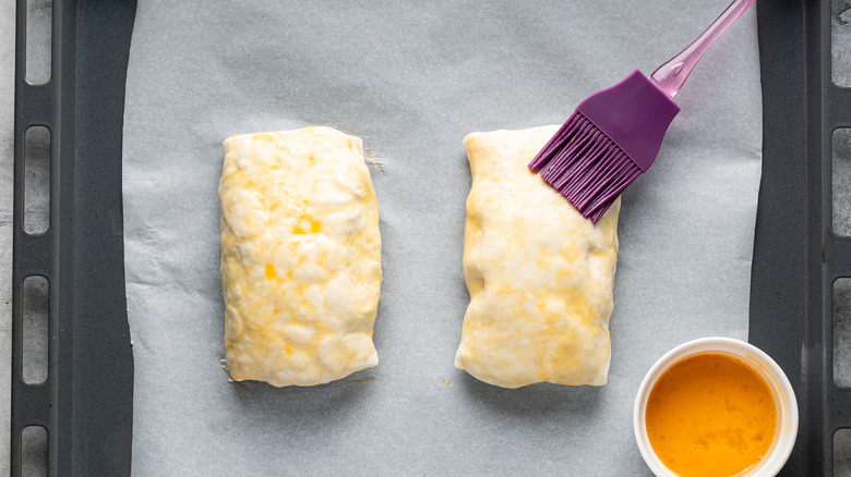 If you're not eager to start a collection of pastry brushes, the site recommends investing in an all-purpose flat brush made of natural or nylon bristles. An inch to inch-and-a-half width is a strong starting point, and if you decide a different brush is needed for a specific culinary project, you can always consider purchasing another. But for golden coats and uniformly-applied washes, there's one brush, in particular, you'll want to leave behind at the store.