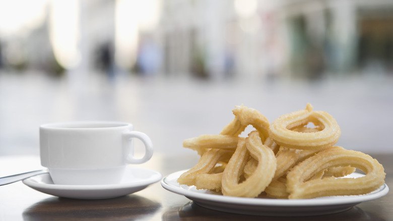 According to Salt & Wind Travel, churros have a centuries-long history in Spain, but dunking them in creamy hot chocolate is a newer practice. When Spanish colonizers landed in South America in the 16th century, they returned to Spain with lots of cacao. Upon mixing the cacao with sugar cane, the iconic chocolate sauce was created. And, for obvious reasons, dipping a churro in the thick, sweet sauce immediately took off.