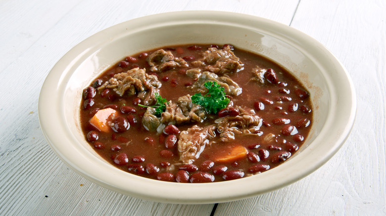 Another one of the notorious meals that Britons recall as a favorite of the Queen's was brown Windsor soup. Modern renditions of the soup, according to Food, are gravy-like and their ingredient lists usually include chunks of lamb and beef alongside vegetables such as onions, carrots, and parsnips. Seasonings like chili powder, salt, and pepper accompany splashes of Madeira wine and beef stock. The unique soup is known today by Britons across the nation as a rather disgusting Victoria-era soup, as per Atlas Obscura. Although, there's one problem with this story: Brown Windsor soup didn't exist until the 1920s.