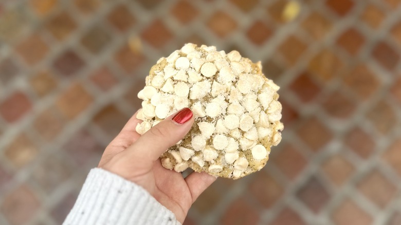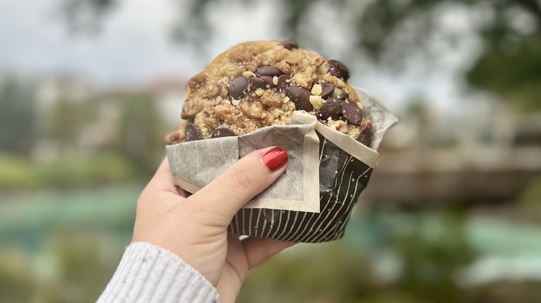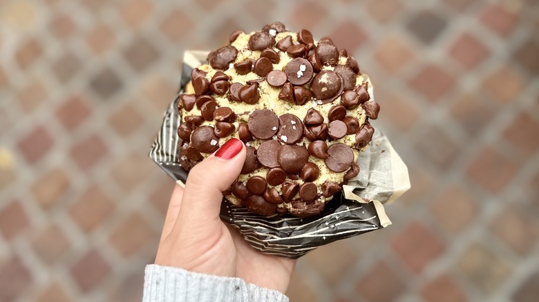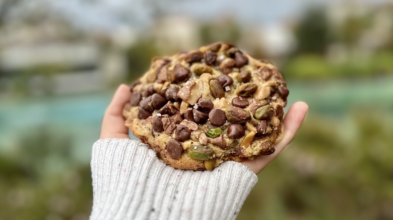 With this cookie, the banana comes through exceptionally strong. You may not be expecting it to be as powerful as it is, and if you're used to mild banana bread, this may be a little bit of an unwelcome surprise. We found the walnuts on top a welcome addition but thought they could have been more candied and toasted than they were. Though the cookie should have banana chips on top, we didn't really notice any, unfortunately. While this is a favorite of many, we didn't enjoy it as much as others. What's more, we even found this one oddly salty and not as sweet. We welcome unique flavors but feel our banana bread is best when it's a sweet treat.