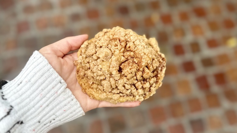 While we didn't get to order a Dark Coffee Cake cookie, we did get to Gideon's in Disney Springs in time for the Coffee Cake cookie. Honestly, it's worth heading to Gideon's early in the day simply to enjoy this one. It's undoubtedly one of our favorites and very hard to beat. The vanilla bean coffee base cookie creates the foundation, and then it gets covered in a cinnamon strudel. Imagine the moistest and most tasty coffee cake you've ever had, add some cinnamon, and you'll have had this cookie. We love ordering a couple, bringing them home, and enjoying them over a few days for breakfast. Seriously, there may be nothing better than this cookie paired with a delicious latte. If you simply can't wait to eat it, consider ordering it alongside a cold brew. Gideon's recommends the Pumpkin Chai Nitro Cold Brew to complement it, but we think it's hard to beat the peanut butter cold brew in Disney Springs.