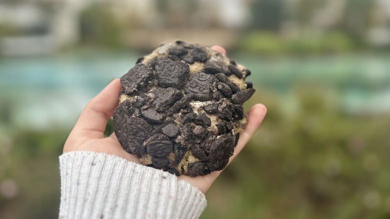 Why have regular chocolate chip cookies when you can have triple chocolate? Despite the name, this cookie actually has five different types of chocolate. Gideon's says that some of these tasty chocolatey bits come from Ghiradelli (one of our favorite chocolate chip brands) and Callebaut, among others. Bakers also put delicious and creamy chocolate ganache into the mix as the cookie is being prepared. All of this love is obvious the moment you bite into it.
