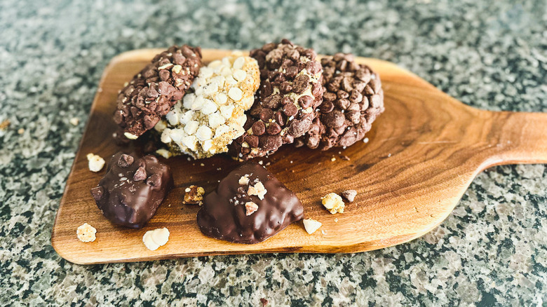Each month, new cookies get rotated onto Gideon's cookie menu, but there are several available year-round. Daily, you can order Original Chocolate Chip, Pistachio Toffee, Peanut Butter Crunch, Banana Bread Chocolate Chip, Cookies & Cream, and Triple Chocolate. For a taste of everything, consider the bites. These little cookies are covered in chocolate and are a mix of popular flavors as well as some other limited options. During our most recent visit in December, Gideon's offered two holiday cookies: Kris Kringle and Krampus.