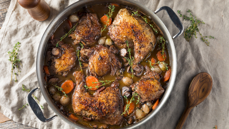 When it comes to French cooking, alcohol isn't just for drinking. Wine and other liquors often play vital roles in transforming the taste and texture of a dish. Wine and Pernod can be used to poach fish, as well as to create a light but lovely beurre blanc. Heartier dishes like coq au vin employ wine in the braising process, which cooks down to create a rich and flavorful broth. The classic French technique of flambé is when a small amount of alcohol is added to a hot pan. The liquid begins to evaporate and catches on fire, rapidly burning off the alcohol and leaving only the taste behind. (Just remember to flambé safely by taking the pan off the heat prior to adding the alcohol.)
