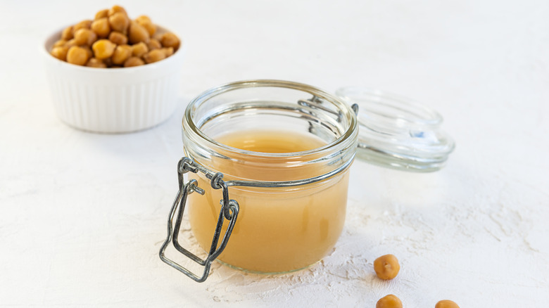 Chickpeas, or garbanzo beans, are a staple ingredient in many kitchens, whether canned or dry, are used in a variety of soups and salads, and are an excellent source of protein. What you may be unfamiliar with, though, is the hidden talent of canned chickpeas. Aquafaba is the brine or water that canned chickpeas sit in, and it's an almost perfect replacement for egg whites (via WebMD).