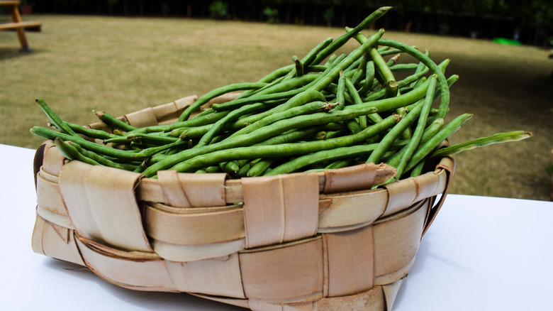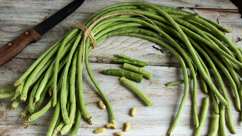 One species of bean you may not have encountered is the yardlong bean. These beans resemble traditional green beans in terms of color, but they're unique in their excessively long size, as the name suggests. Yardlong beans are a vining (or pole bean), annual type of bean, and native to Southeast Asia (via Echo Community). There's a lot more to yardlong beans than their size, though. Their taste and use in cooking, as well as their nutritional benefits, are exceptional and a little unique, but they still retain a classic legume flavor. Keep reading to learn more about this wonderful long bean variety.