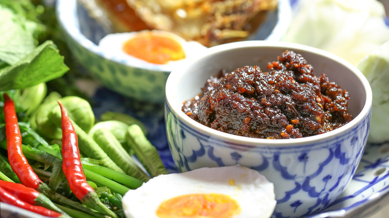 The resulting taste is quite strong, spicy, and slightly sweet. Since it does have a very distinct flavor, it can be eaten on its own by being spread over toast, crackers, or sandwiches. However, it can also be added to anything — from Thai soups to stir-fries to salads. Culture Trip notes that it's especially popular mixed into noodle soups in Thailand, most commonly making an appearance in the country's beloved tom yum soup.