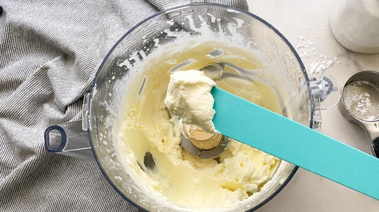 The food processor is another tool that will happily make your whipped cream. Just add the ingredients and blend for 2 minutes for soft peaks and 2 minutes and 30 seconds for stiff peaks. The tricky thing here, however, is that you can't see what's going on, so best to work in 10 second increments. Butter can form easily with this method, which can be a strong con. Because a food processor has a large, wide bowl, it's easy to scoop out the whipped cream, which is at least one point in the pro column.