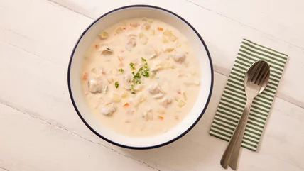 Foodies have been enjoying clam chowder for centuries, and the dish has endured for a reason. It's warm, savory, filling, and doesn't require any complicated techniques to make. Essentially, you toss all the ingredients in a large pot and cook. Plus, clams are high in lean protein (we're talking 12 grams of protein per 3-ounce serving high) and rich in omega-3s, which promote heart health, says Healthline.