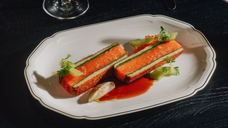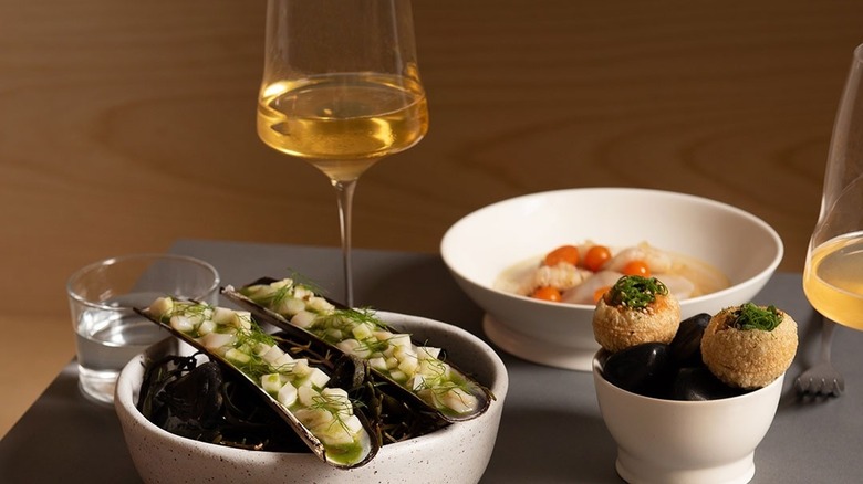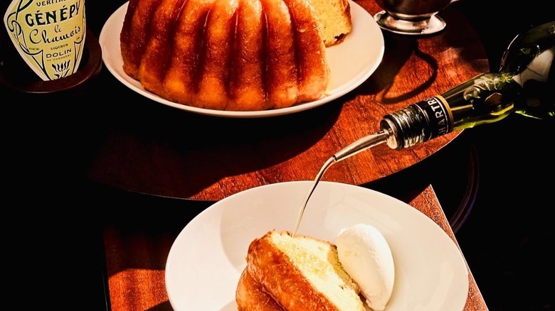 The star of the show is a three-tiered "boef" appearing in the style of a seafood tower, which includes smoked beef tongue layered with foie gras, tenderloin tartare with fresh horseradish, and oxtail in a crust of hazelnut brioche. Other menu highlights include pillowy gougères filled with a raw-milk Austrian cheese called bergkäse, and tagliatelle with fennel pollen, smoked caviar, and smoked trout. Desserts from award-winning pastry chef Emiko Chisholm include Austrian-style crepes and a peach and raspberry trifle with pecans. It's Austrian tradition to enjoy schnapps or eau de vie after dinner and the upstairs bar at Koloman obliges with an expertly curated selection from beverage director Katja Scharnagl (via NBC New York).