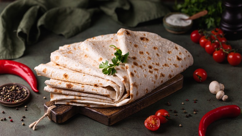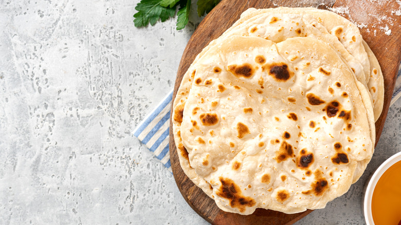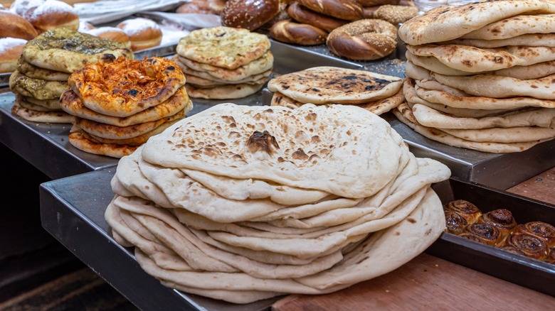 The main ingredients of a flatbread are flour, water, and salt — thus making the flatbread one of the most versatile ingredients in the kitchen. But despite the perceived simplicity of the flatbread's ingredients, there are apparent differences in how this carb is consumed worldwide. Here are some of the most popular types of flatbread you can find around the world.
