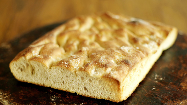 Focaccia likely isn't the type of bread you think about when it comes to flatbread, but its high crust-to-crumb ratio technically classifies it as a flatbread. This leavened Italian bread is made with wheat flour, salt, and water. Focaccia is characteristically dimpled to increase its surface area. It can be topped with the standard olive oil and flaked sea salt or made into edible art with rosemary, olives, cherry tomatoes, and onion. It is typically eaten as an appetizer or snack in Italy, but it can also be served alongside hearty Italian pasta or meat dishes as well.