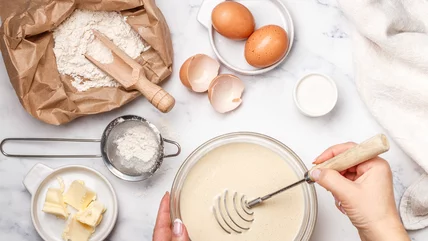 According to "The Great British Bakeoff" competitor Rahul Mandal, who spoke to Physics World, each baking recipe is essentially a well-designed science experiment with reasons behind every step based on the chemical process each aims to create. When baking a cake, in particular, there are many different variables that can affect the final texture and taste of your cake. If you focus specifically on the spectrum of possible textures, there's one ingredient in particular that, depending on how it's tinkered with, can affect the density of your cake.