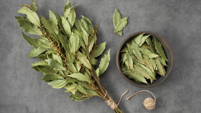 If you're like a lot of home cooks, you've probably asked the same age-old question: Why do we cook with bay leaves? Even the Escoffier School of Culinary Arts says "many people have questions about its necessity and use." According to Britannica, bay leaves come from the sweet bay tree, Laurus nobilis, which is native to the Mediterranean region. The outlet describes bay leaves' profile as "delicately fragrant" with a "bitter taste," containing only 2% essential oils. (Talk about understated.) Food scientist Brian Chau says the flavor is naturally minty with mild eucalyptus notes, via Today, and Escoffier likens the flavor to oregano, thyme, and black tea. But, the fact that recipes only ever seem to call for one singular bay leaf might imply that it's a super potent ingredient to be used in moderation. Still, the sensory experience of opening a package of bay leaves is underwhelming at best.