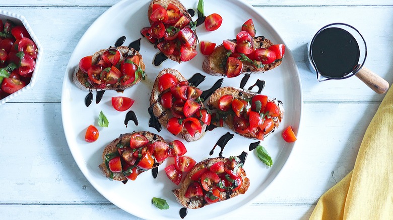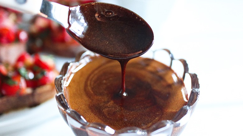 Recipe developer Cecilia Ryu has struck that sweet and tangy balance with her honey balsamic glaze recipe — a glaze that she describes as being very versatile. "It can be drizzled on top of desserts, specifically ice cream or fruit," Ryu says of the glaze. "It's also a must for bruschetta! I also like to drizzle it on top of salads and roasted portabella mushrooms." This recipe is especially a winner because you need only 2 ingredients, and 12 minutes to make the magic happen. Your bruschetta, pizza, and charcuterie boards will thank you for this sweet and tart addition.