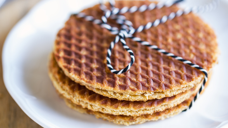 Kamphuisen first baked the waffle cookies with leftover dough and crumbs, then later filled the cookies with syrup, notes Gouda Original. The waffles were sold cheaply at first and were found only in the area surrounding Gouda. As Foodicles explains, Kamphuisen's first batch failed, as the baker tried to make a single wafer using his waffle machine, and his attempt resulted in a crumbly mess. Gradually, Kamphuisen included syrup and molasses to hold the thin waffle pieces together. His effort worked, and by 1870, around 100 bakers in the city of Gouda were cranking out similar waffle cookies.