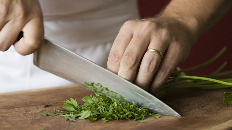 If the flavor of the herb that Fine Dining Lovers notes is a feature in dishes like tabbouleh, baba ganoush, osso bucco, and chimichurri isn't enough to pull you into parsley's corner, then what about its nutritional benefits? Healthline points out that fresh parsley is a good source of vitamins A, C, and K, as well as folate and antioxidants. And according to SF Gate, parsley outstrips herbs like basil, dill, chives, and cilantro as a source of nutrients betacarotene, vitamin C, folate, iron, and potassium. Rather than fretting over ways to keep a bunch of parsley fresh after we've used just a bit as a sprinkle of color, we should embrace the herb for its fresh flavor and nutritional value.