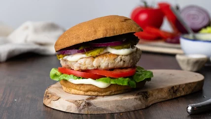 Rye's bread crumb and mayonnaise based panade is what gives her Garlic Chicken Burger its consistency and helps hold the patty together. According to the Tasting Table recipe developer, her panade, which includes garlic and onion powders, oregano, and Dijon mustard, also provides abundant flavor and gives the burger the fat and moisture it needs to stay tasty throughout the cooking process. "It's a surefire trick to make sure your chicken burgers aren't tough or dry, which is quite a risk when cooking with chicken mince," Rye explains.