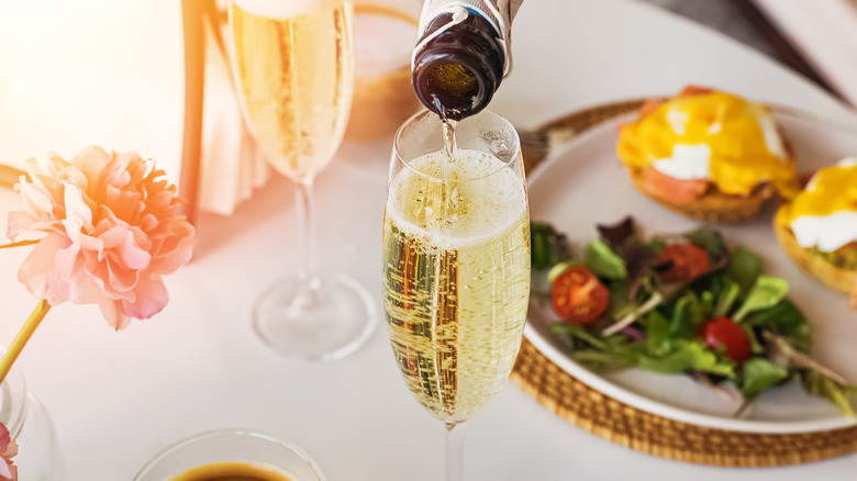 Finally, it's aged for at least nine months before it can be popped, per Wine Enthusiast. As Ellis Wines explains, this slower, bottle-based fermentation process gives crémant a frothier crown (or "mousse") than prosecco, with more lasting bubbles. This method can acquire certain desirable flavor notes such as "lemon, apple, honeysuckle, and brioche."